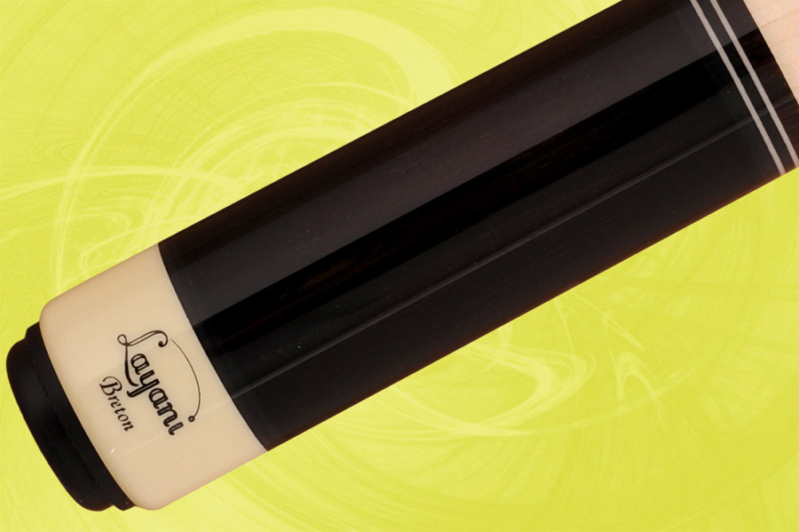 Section du haut et talon en ébène. Manche en érable ondulé. Bagues décorative en ébène. Les protections Layani sont offertes pour les modèles Breton Stéphane Nole.