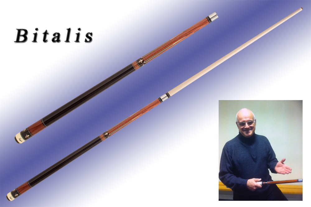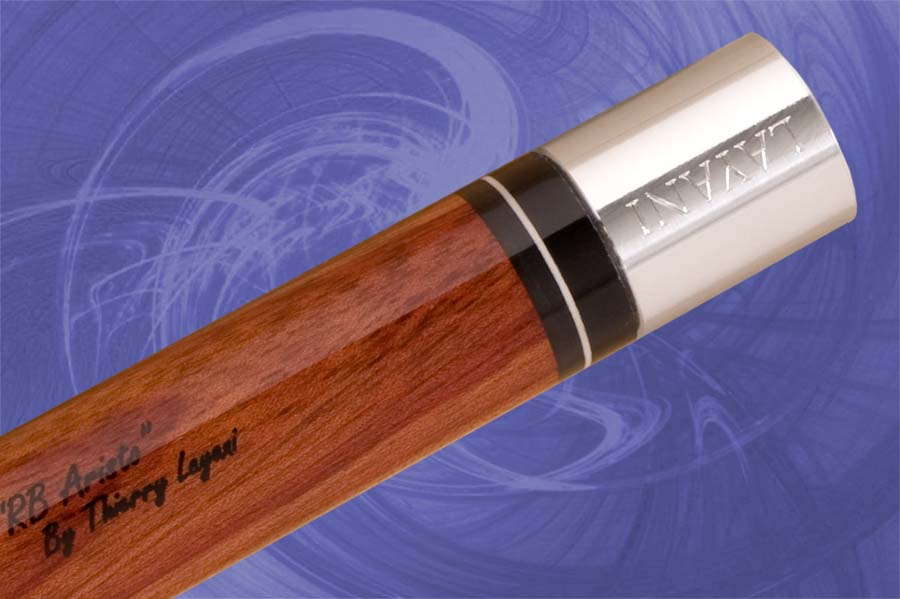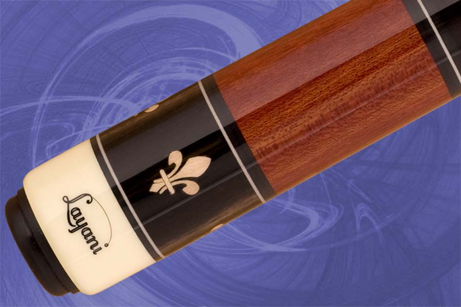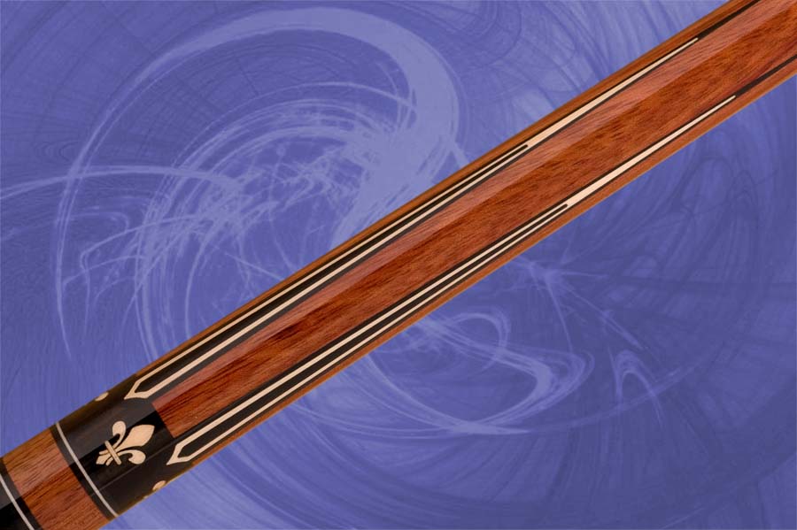 Ce modèle a été conçu pour le joueur français Bitalis. Section du haut et talon en érable ondulé marron. Incrustations très fines en ébène. Incrustations de fleurs de lys en érable ondulé blanc sur les bagues décoratives en ébène.