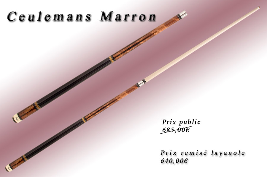 Ce modèle a été conçu pour le joueur master Belge Peter Ceulemans. Section du haut et talon en érable ondulé marron. Incrustations très fines en ébène. Ce modèle a été conçu pour le 3 bandes et les jeux de séries.