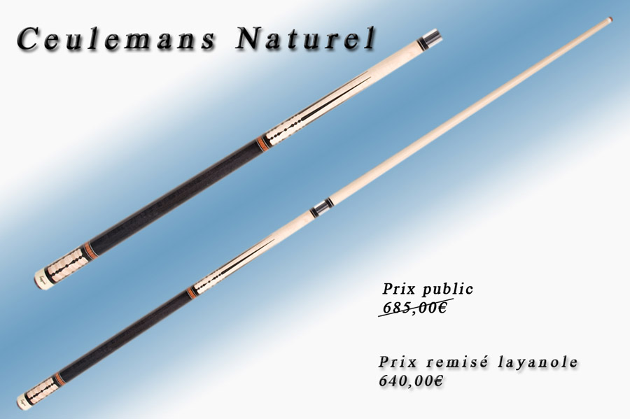 Ce modèle a été conçu pour le joueur master Belge Peter Ceulemans. Section du haut et talon en érable ondulé. Incrustations très fines en ébène. Ce modèle a été conçu pour le 3 bandes et les jeux de séries.