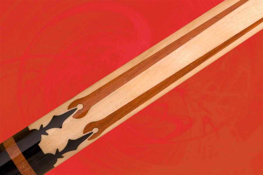Ce modèle a été conçu pour le joueur master Thorsten Frings. Section du haut et talon en érable ondulé vert. Incrustations en ébène et en satiné rubané. Bagues décoratives en houx.