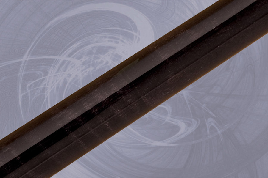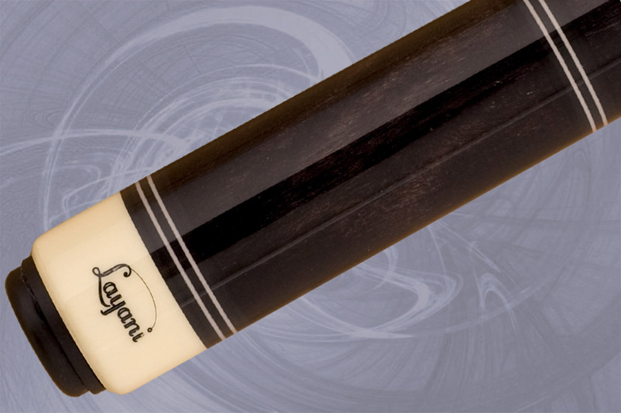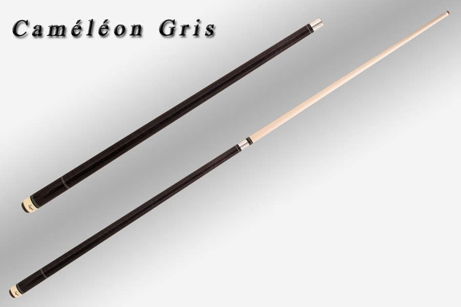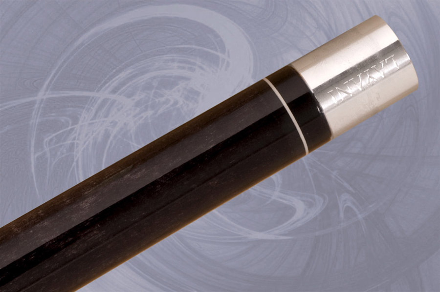 Section du haut, manche et talon en érable ondulé avec teinture grise. Bagues décoratives en ébène.