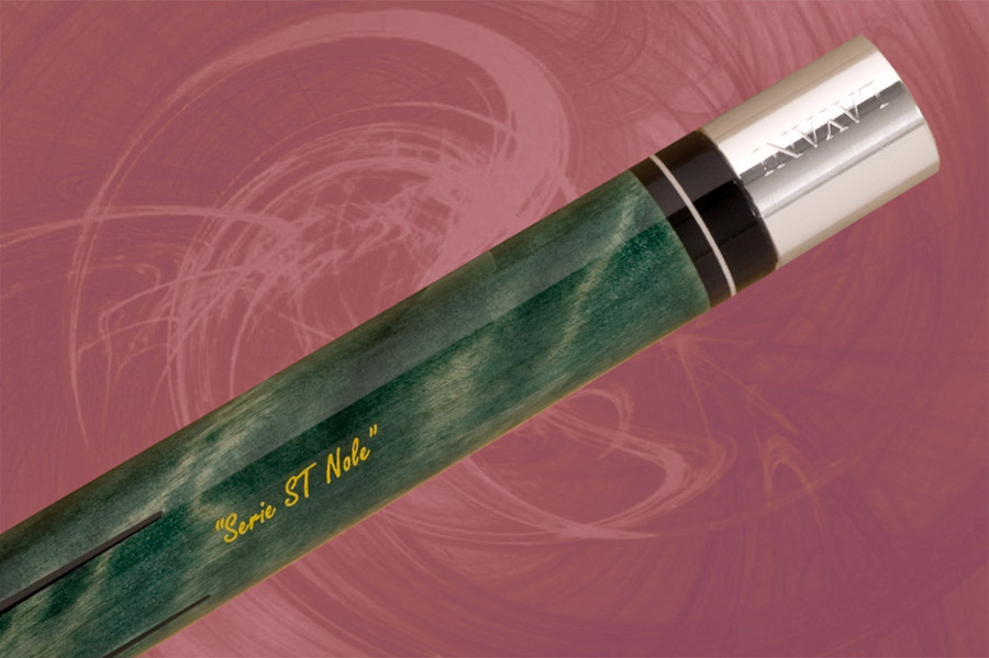Section du haut et talon en érable ondulé vert. Manche et incrustrations en ébène. Les protections Layani sont offertes pour les modèles Breton Stéphane Nole.
