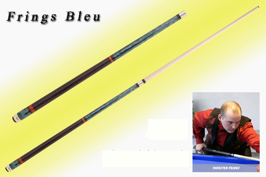Ce modèle a été conçu pour le joueur master Thorsten Frings. Section du haut et talon en érable ondulé bleu. Incrustations en ébène. Bagues décoratives en houx.