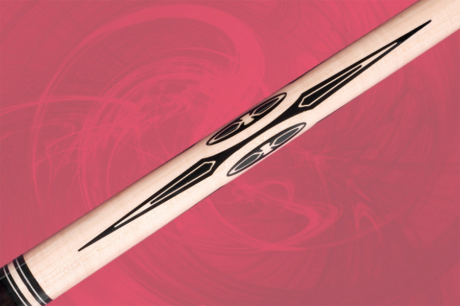 Section du haut et talon en érable ondulé avec le manche en ébène. Incrustations d'ébène et de houx. Bague décorative en ébène. Conçu spécialement pour le 3 bandes, mais peut être également utilisé pour le jeu de série (495g et plus).